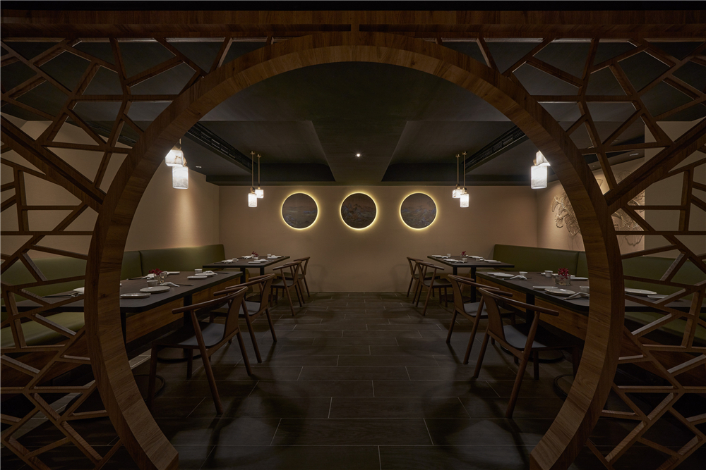 作為新式粵菜餐廳,設(shè)計師運用新式材料及工法繪製傳統(tǒng)東方意象,烘托品牌「在傳承中創(chuàng)新,在創(chuàng)新中延續(xù)」的特質(zhì)。整體餐廳裝修設(shè)計捨棄中式華麗,改走清淡、灰階的調(diào)性,不鮮亮,不張揚,融入煙雨江南的水墨氛圍,散發(fā)復古深邃、內(nèi)斂雅致的古典感。