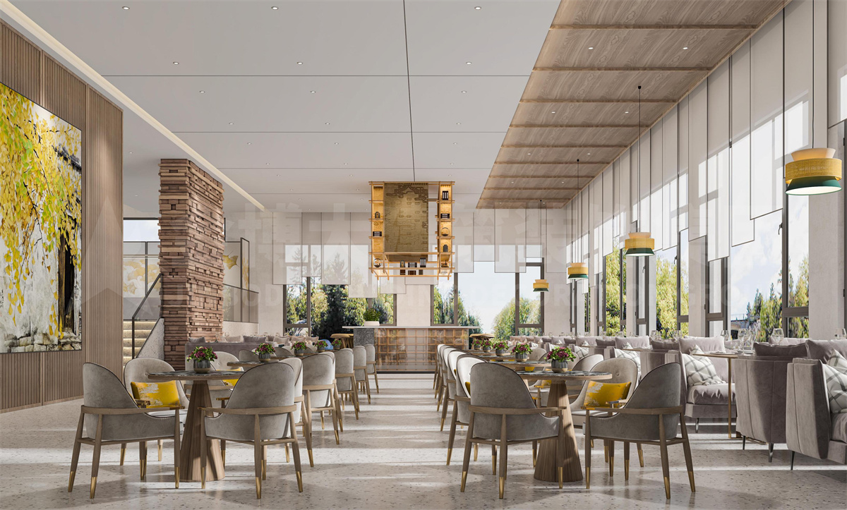 民宿室內(nèi)設(shè)計(jì)以“銀杏”為引,將自然風(fēng)光與室內(nèi)相結(jié)合,運(yùn)用現(xiàn)代極簡(jiǎn)手法結(jié)合質(zhì)樸裝飾,塑造當(dāng)代藝術(shù)住宿體驗(yàn)。不管是接待大廳中的銀杏葉屏風(fēng)還是餐廳中的裝飾畫作,都在闡述空間的主題。餐廳包房規(guī)劃有茶藝區(qū)和用餐區(qū),或品茶觀景,或談笑歡聚,都是愜意之選。...