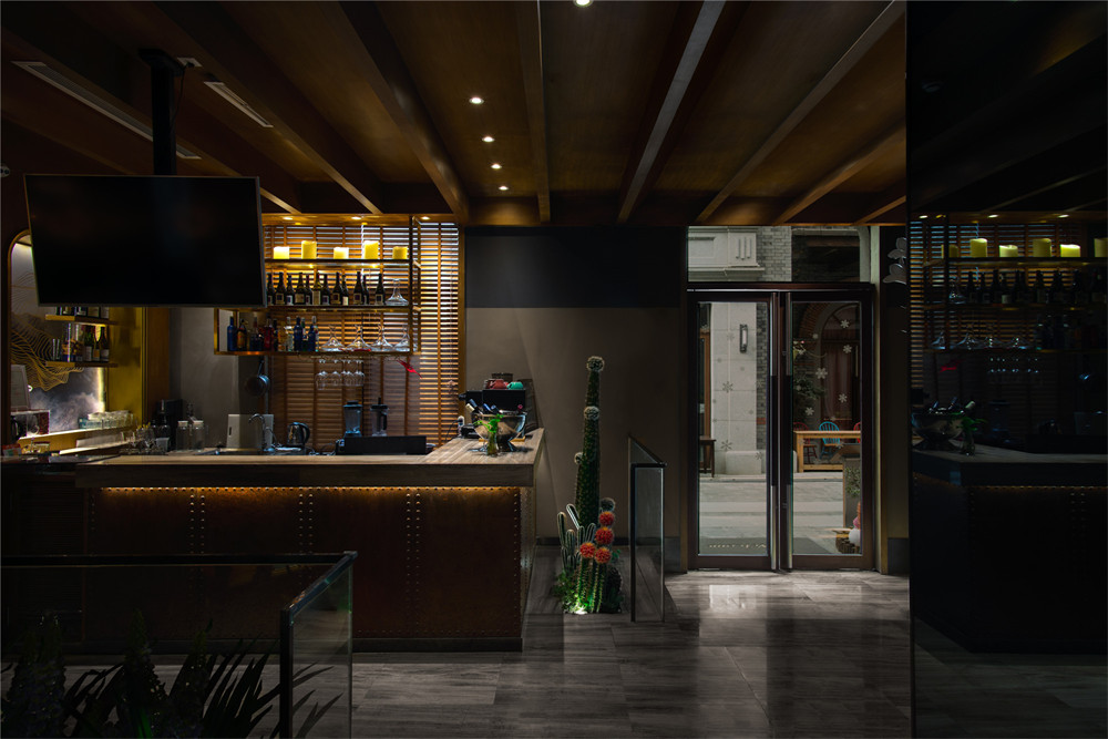 本案打造的是一個創(chuàng)意川菜與葡萄酒結合的音樂酒吧餐廳。整體餐廳裝修設計給人一種置身于花園之中的寧靜感,大片的生態(tài)綠值,像叢林也像葡萄藤蔓。在忙碌緊張的工作之余,走進餐廳能感覺“慢”下來,享受美食享受生活。