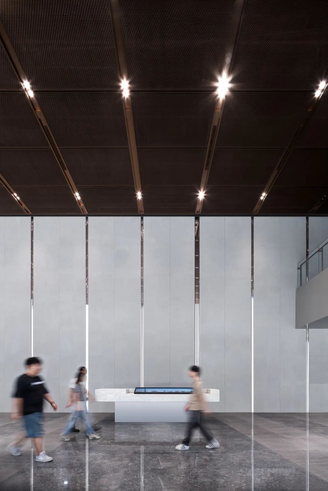 提取交通運(yùn)輸工具金屬的質(zhì)感,車窗-圓角,阡陌交通的線路感,讓每層的核心筒都成為一輛急速行駛的科創(chuàng)專列,從而在意趣交融的整體氛圍之中,塑造出專屬企業(yè)符號(hào)。