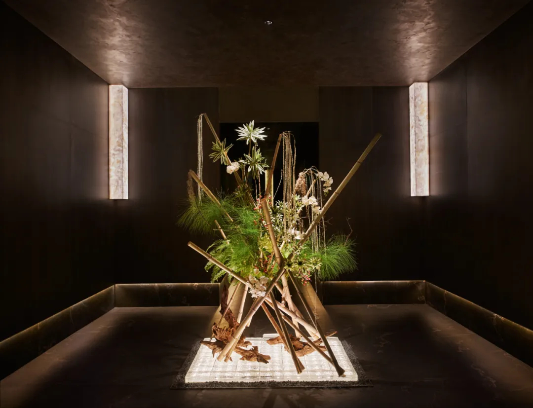 中心卡座區(qū)是視覺(jué)焦點(diǎn),發(fā)光景觀臺(tái)采用水紋玻璃磚,光影靈動(dòng),仿佛波光粼粼的湖面?;ㄋ嚲坝^與綠植錯(cuò)落有致,增添生機(jī)與詩(shī)意。透光云石燈具既提供柔和光線,又巧妙分隔空間,增添現(xiàn)代感和時(shí)尚氣息。