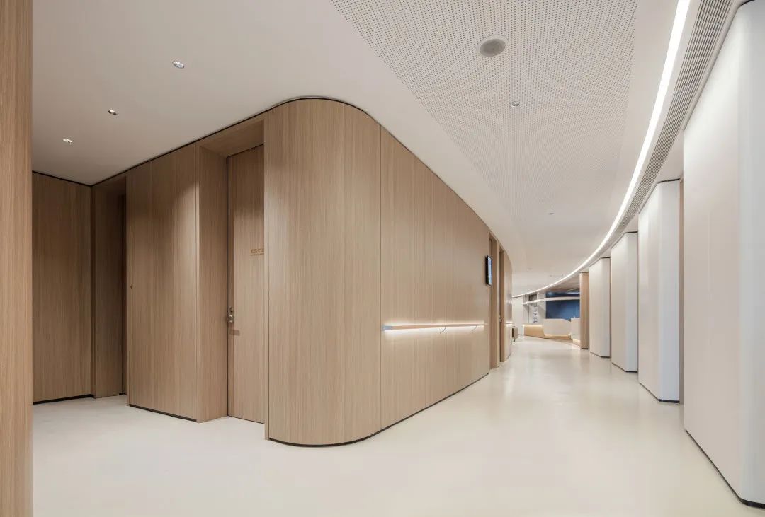 “空間可視、可觸、可感、可游的部分,將極大地影響人的情緒,安撫人的心緒。這一點,在醫(yī)療空間這類需要信任與安全感的環(huán)境里,尤為明顯?!痹O計師在此強化的是體貼人心微處的柔軟共鳴,這份體貼交予空間的每一個使用者,以愛和專業(yè)營構空間靜愈心靈的沉浸力。