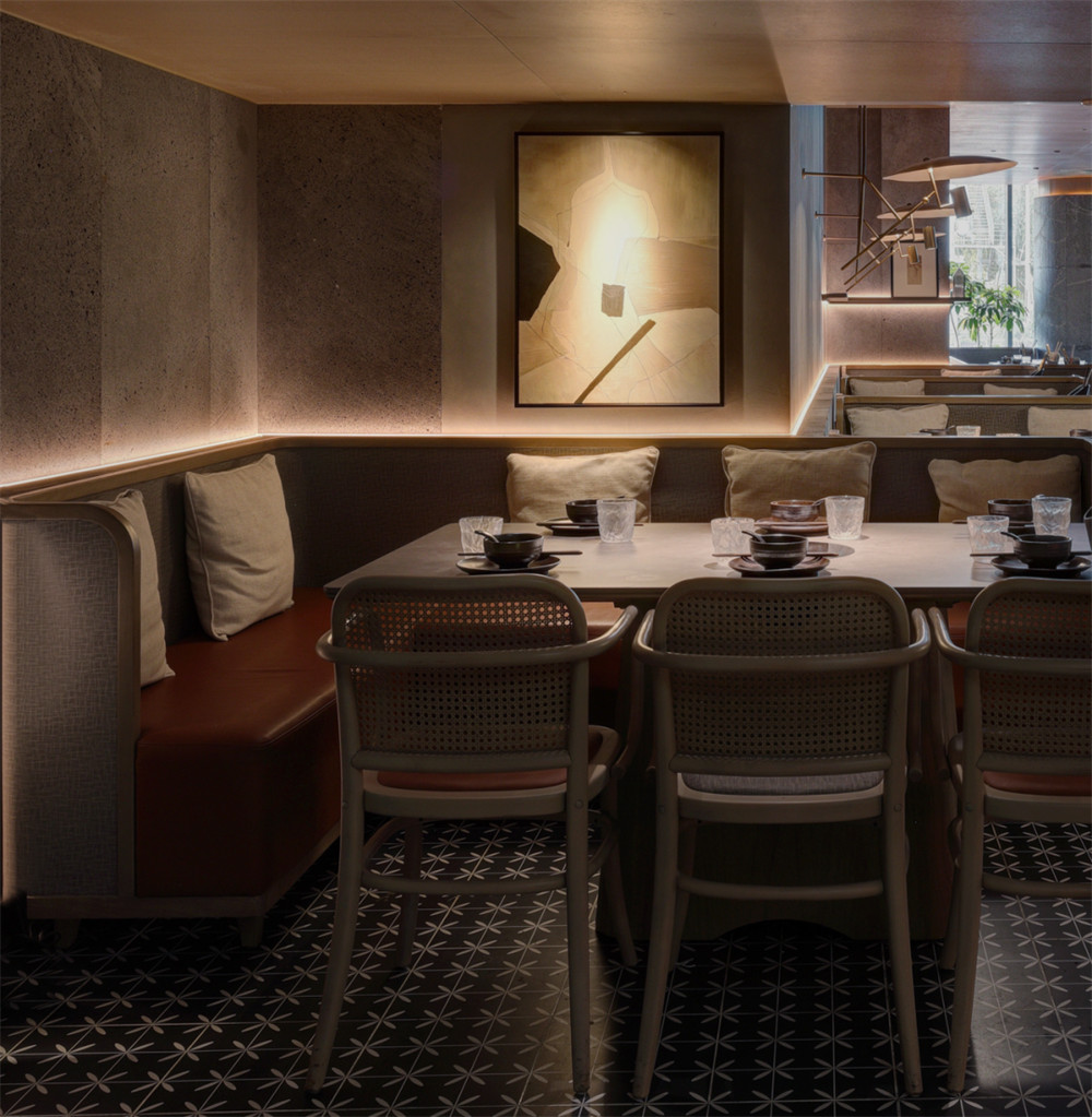 自然、放松的空間呈現(xiàn)與精細(xì)、考究的內(nèi)在核心渾然一體,和品牌“幸福感”產(chǎn)生共鳴。 優(yōu)秀的設(shè)計(jì)師需要有“構(gòu)建”的能力,不光構(gòu)建空間,還要構(gòu)建食物與空間、食物與人、人與人之間的關(guān)系。